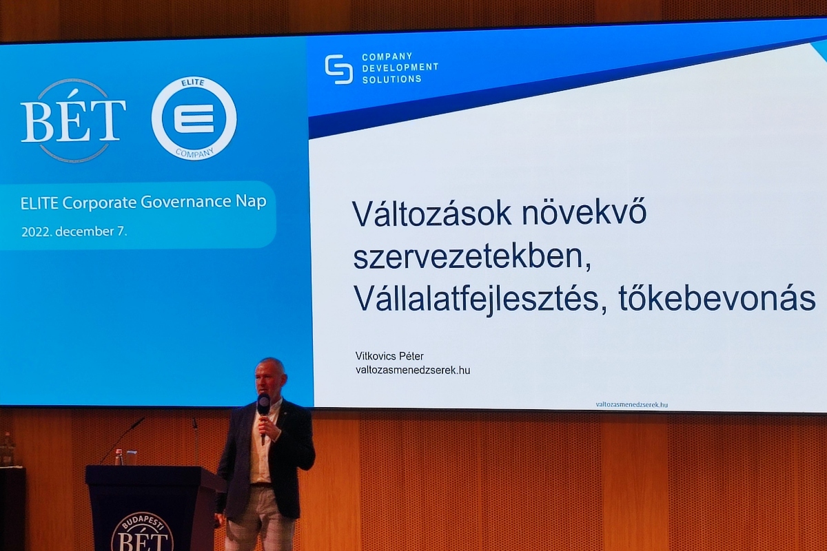 Az eseményt Máté-Tóth István, a BÉT vezérigazgató-helyettese nyitotta meg, majd Dr. Pintér Attila, a PV Partners Ügyvédi Iroda irodavezető partnere a dinamikusan növekvő startup vállalkozásoknál (scale-upok) alkalmazott vállalatirányítási rendszerekhez nyújtott áttekintést, hazai és nemzetközi viszonylatban egyaránt.