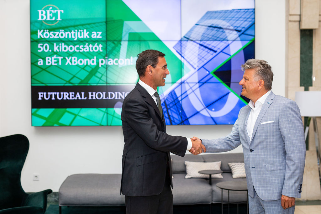 Büszkeséggel tölt el, hogy mintegy két év alatt immár 50 vállalat választotta a BÉT Xbond platformot növekedése eszközeként. Külön öröm számomra, hogy az 50. bevezetés éppen egy zöld kötvény lett, hiszen ezen aspektus különösen előtérbe került az elmúlt időszakban, illetve szükséges, hogy előtérben maradjon a jövőben is. Gratulálok a Futureal Holdingnak a kiemelkedően nagy értékű kötvénykibocsátáshoz, illetve sok sikert kívánok a tőzsdei kereskedéshez.”