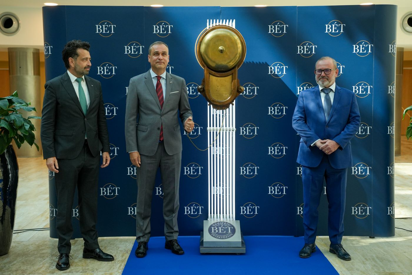 A kötvényprogram keretében kibocsátott első kötvénysorozat tőzsdei bevezetése kapcsán szervezett ünnepélyes csengetési eseményen részt vett Lantos Csaba energiaügyi miniszter, Mátrai Károly, az MVM Zrt. vezérigazgatója és Tóth Tibor, a Budapesti Értéktőzsde vezérigazgatója.