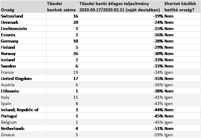 Bankok teljesítménye a COVID-19 alatt, a short tiltások bevezetéséig