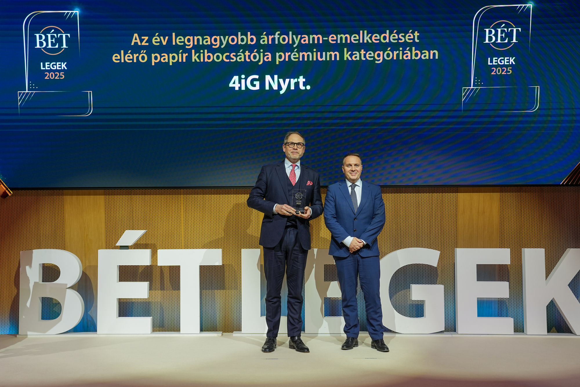 Az elmúlt év legnagyobb árfolyam-emelkedését elérő prémium kategóriás papír kibocsátója a 4iG volt (350 százalékos növekedéssel), míg a befektetői tudatosság terjesztéséért járó díjat a Jurisich Miklós Gimnázium és Kollégium tanára Kiss Zoltán vette át, akinek diákjai rendszeresen az országos pénzügyi versenyek legjobbjai közé kerülnek. A BÉT multilaterális, középvállalatoknak szóló Xtend piacán a 2025-ös év kibocsátója díjat a STRT Holding vehette át, amely az év végén a sikeres IPO-t követően, egy kategóriaváltás keretében már a tőzsde szabályozott piacán folytathatta tőkepiaci pályafutását. A BÉT Xtend különdíjat pedig a Whiteless Rock Zrt. kapta, amely kijelölt tanácsadóként támogatja a kibocsátókat a bevezetéstől a forgalomban tartásig, növelve a piac biztonságát és a befektetők érdekvédelmét. A közönségszavazás alapján „Az év hazairészvény-kereskedési platformja” a K&H Bank webtrader és mobiltrader rendszere lett.
